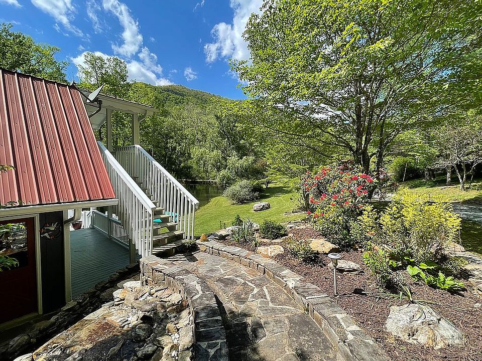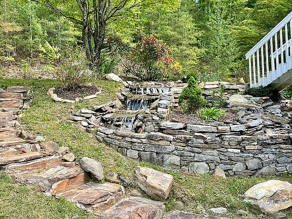 Furnished Home remodeled in 2006 with large addition. Great Family Retreat w/ a large pond & bold stream. Main level of the Main House is an open living room w/ stack stone wood burning FP, a dining area & an eat-in kitchen w/ island, built-in cooktop, built-in oven & microwave, the master suite has separate his & her en-suite baths & office area. Upstairs is another complete living area, w/ living room, sitting room, kitchen, master w/ en-suite plus 3 bonus rooms used as bedrooms, laundry, pantry & porch overlooking the pond & stream. The main level has a lg. outdoor covered sitting area plus decking overlooking the pond & stream. Stone paths & landscaping around the house include a waterfall w/ 4 falls next to the living room area. At the other end of the pond is the 'Bunk House' - a 1575 sf building w/ a kitchen area & full bath on the main level w/ a woodstove & lots of room for fun & games plus a workbench area. Upstairs is a 31' x 12' Bunk Room w/ built-in bunk beds & a mini split for heat & A/C. This building also has a 882 sf RV garage & workshop. Behind the Bunk House is a shed w/ power. This property adjoins US Forestry Service land & is near Bartram Trail.