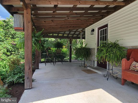 Beautiful country setting for this unique, 2 bedroom, 1.5 bath home, that sits on top of an oversized 2 car garage, on 5.75 acres. This property features a first floor garage and workshop with plenty of room for cars and toys. The garage is also heated with a new propane furnace. Garage also has a half bath, and is well lit day and night. A second propane furnace was installed as well for the main floor living area, and is also located in the corner utility closet in the garage. The main floor above features a spacious living room with vaulted ceilings, dining area, kitchen with skylight and SS appliances, two spacious bedrooms, a full bath and laundry. Master bedroom also has a large walk-in closet. Also, there was a new water heater installed , new flooring/carpet, and new quartz kitchen counters installed, all in 2023. Outside there's a private wrap around patio with a metal roof and additional storage area, a pavilion out in the side yard, large separate storage shed/mini barn, chicken coops in the rear of the house, and out in the front fenced in pasture. There's also a hay shed, an outside wood boiler, (which is a back up heat source) and a weather station with indoor digital read out. There's also a walking trail through the woods to take you from one part of the property to another, a large garden, and several fruit trees around the property with beautiful mountain views and privacy abound. You are allowed to have horses at this property, as well as sheep, goats, and chickens. 15 mins from the Giant super market in Enola, and 20 minutes from everything on the Carlisle Pike. You get the best of both worlds ! Kubota tractor and all the accessories are for sale separately. Inquire with listing agent.