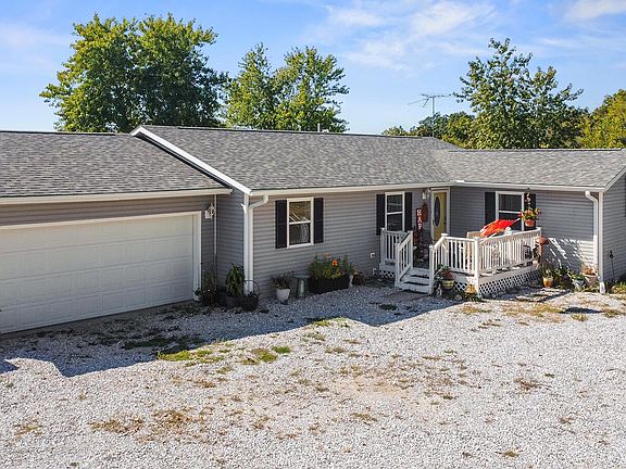 Near Mark Twain Lake---3 bedroom, 1.75 bath ranch home with attached garage on 6 acres, m/l on Hwy. D just west of Santa Fe, MO. Exceptionally well maintained home that has been updated with an open floor plan. Kitchen is equipped with all appliances with breakfast bar and is open to the living area and dining room. A wood stove is perfect for those winter nights. Master bedroom with walk-in shower. Owner has planted oodles of trees of several varieties. Enjoy an abundance of wildlife from your deck. Also a carport.