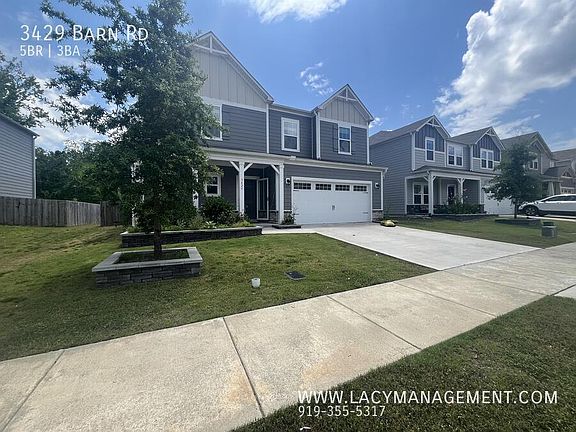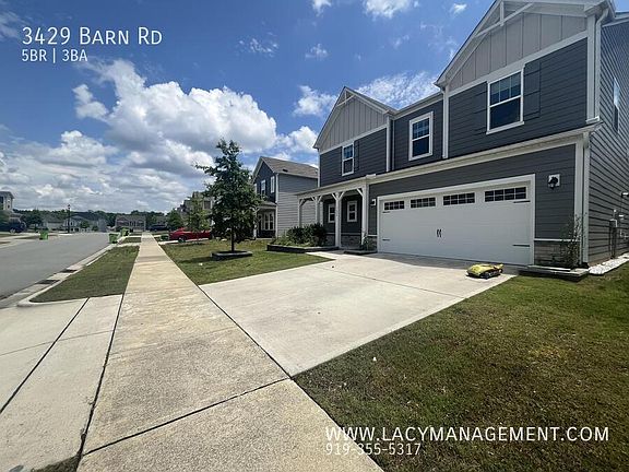Spacious 5-Bedroom Home in Sought-After Deer CreekModern Living in Apex! Welcome to 3429 Barn Road, a stunning 5-bedroom, 3-bathroom single-family home nestled in the desirable Deer Creek community of Apex, NC. This beautifully maintained residence offers nearly 2,600 square feet of elegant living space, perfect for growing families or anyone looking for room to relax and entertain. Step into a bright and open floor plan featuring a spacious family room, a dedicated dining area, and a modern kitchen with granite countertops, stainless steel appliances, a center island, and plenty of cabinet space. The layout is ideal for hosting gatherings or enjoying quiet evenings at home. The first floor includes a flexible guest bedroom and full bath, while upstairs you'll find four additional bedrooms, including a luxurious primary suite with a large walk-in closet and a private bath with dual vanities and a separate shower. Additional highlights include hardwood flooring, ample natural light, a two-car garage, and a private backyardperfect for outdoor entertaining or relaxing in the Carolina sunshine. Located in the vibrant town of Apex, Deer Creek offers easy access to top-rated schools, parks, shopping, dining, and major highways, making it a convenient and family-friendly place to call home. Don't miss your chance to live in this exceptional homeschedule a tour today! Schedule an online showing at: Submit your application online at: Resident Benefits: **Get over $100 in monthly benefits for just $49.95 with our Resident Benefits Package! Enjoy valuable services with the flexibility to customize or opt-out Application Criteria: a) Gross household income of at least 3 times the rent b) A credit score of 650+ is preferred; we are happy to discuss your situation if your credit score is lower c) No evictions in the last 5 years d) A one-time pet fee of $300 per pet applies. An additional deposit may be required for multiple pets. No monthly pet fee e) One-time admin fee of $250 required to pay after signing the lease