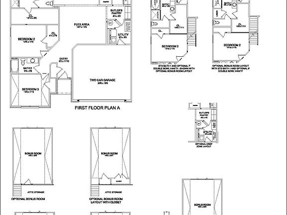 The Baldwin Expanded is a ranch plan that offers an upstairs bonus room option, which adds 397sf to 675sf and can be configured to include a closet and a half or full bath*. The kitchen includes a serving bar to the family room, a pantry, and separate breakfast area with bay window. A butler's pantry adds a luxury touch, as well as a convenient serving point between the kitchen and versatile flex room. The primary bedroom has a tray ceiling and bay window. The bath includes a garden tub and separate shower, single bowl vanity with available six or seven-foot double bowl vanity option, and a large walk-in closet. Bedrooms two and three share a bath, which includes a transom window and semi-private hallway. Other plan features include a pass-through utility room layout, a covered entry, and vaulted ceilings in bedroom 3.