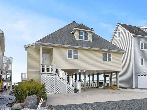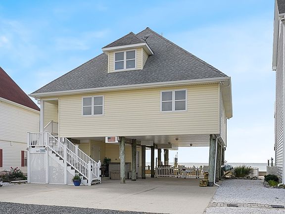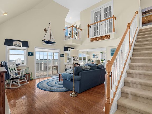 Nestled in Captains Cove, this stunning waterfront home with elevator offers breathtaking bay views. Featuring 3 bedrooms, 2 baths & a welcoming living room adorned w/ a cathedral ceiling. Glass sliders lead to a deck, perfect for enjoying the sprawling bay vistas. Cozy fireplace & elegant hardwoods enhance the inviting ambiance. The well-appointed eat-in kitchen boasts an island & abundant light. Two bedrooms, a bathroom & laundry area are found on the main floor. The expansive second floor, dedicated to the luxurious primary suite complete w/ a private bath featuring a jetted tub. Outdoor amenities abound including a patio and a dock w/ a lift. Under-home storage & a floored attic offering ample space. Experience the ultimate waterfront living in this captivating coastal abode!