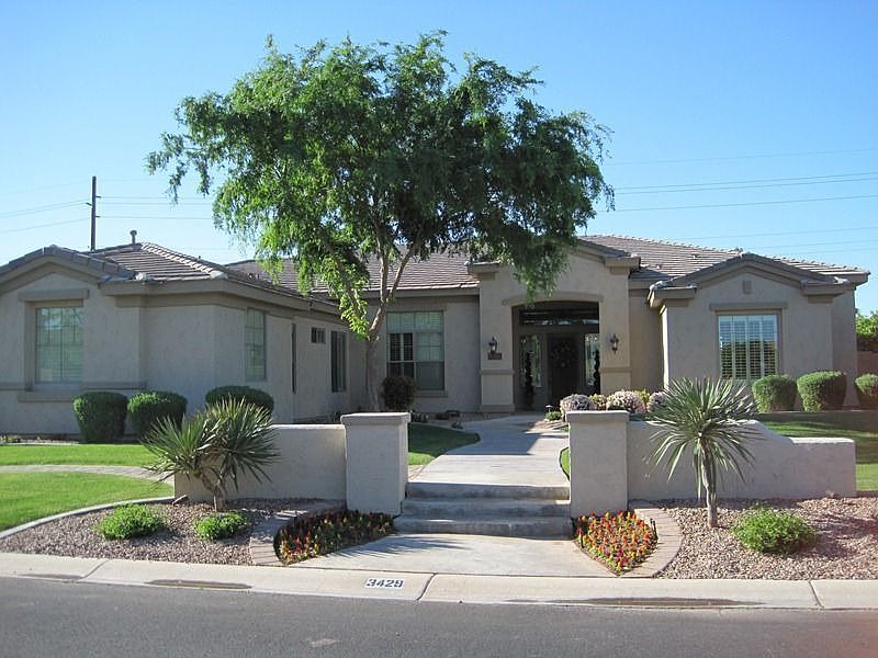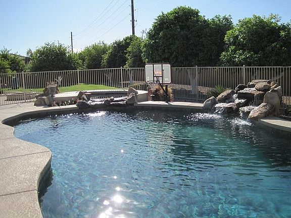 Beautiful Home in the gated community of Arboleda in NE Mesa. Community has 2 private parks, 2 tennis courts & pavilion. Upgrades to house include leaded glass entry, over 2,000 SF of Travertine flooring, upgraded carpet, granite countertops in kitchen & bath's, wood molding in all BR's, formal DR & LR. Prof landscaped lot w/over 17 citrus trees & a 25,000 gallon gated diving/play pool w/in floor cleaning, real rock waterfalls, pebble tec interior, hot tub & over 700 ft of deck. Built in barbeque & fire pit w/direct gas line connections. Speaker system inside & on the exterior patios. Jetted Jacuzzi in MBR, large closets in all bedrooms and tons of storage. This house is highly upgraded and owned by the original owner- A MUST SEE!! OWNER/AGENT