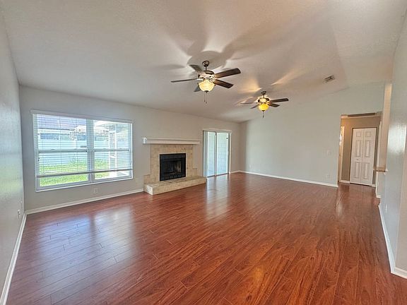 Freshly painted and move-in ready, this 3-bedroom, 2-bathroom home with a 2-car garage is located just minutes from Garden Grove Elementary in Southeast Winter Haven. The main living areas feature vaulted ceilings and easy-care wood laminate flooring, creating a bright and spacious atmosphere. A cozy fireplace and dual ceiling fans add charm and comfort to the generous living room. The kitchen offers granite countertops, stainless steel appliances, updated cabinetry, and ceramic tile flooring. Enjoy meals in the cozy breakfast nook or entertain in the separate dining area. The split bedroom layout provides added privacy, and the two guest bedrooms will soon have brand new carpet installed! Step outside to the 12x15 screened lanaiperfect for relaxing or entertainingwith a fully fenced backyard for added peace of mind. Conveniently located near Legoland, Publix, Walmart, and HWY 27, this home wont last long!!