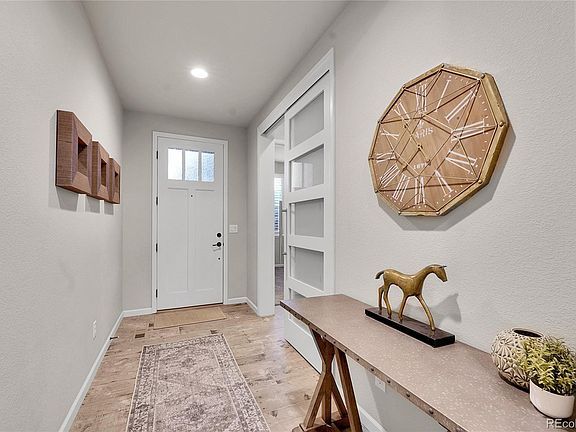 So many upgrades, this home feels like a brand new model home. Located in the New Haven community of The Meadows this premium lot is larger than most and backs to open space. The huge open floor plan is great for entertaining with the kitchen, dining and family rooms leading you seamlessly to the patio making entertaining a breeze. There are 3 bedrooms on the main level, including a large primary suite with an ensuite bathroom and large walk-in closet along with direct access to laundry from the primary suite. A dedicated main-level office provides a quiet and functional space for remote work. The fully finished basement includes a family room, game room, a huge wet bar with dishwasher, and 2 chillers, 2 large bedrooms and 2 bathrooms, providing a flexible layout that’s perfect for guests, a home office, or multi-generational living. One of the bedrooms and bathrooms was recently added and features designer-level finishes, making an ideal private retreat for guests. In the backyard enjoy the tranquility of backing to open space with views of bluffs that is more unique to this side of the neighborhood. Landscaping and open space offer added privacy and a scenic natural backdrop for relaxing or hosting gatherings. The Meadows neighborhood provides lots of community amenities including a pool, parks, playgrounds, and miles of walking and biking trails and minutes to the Phillip S Miller Activity Complex. Conveniently located, this home is just minutes from the Castle Rock outlet mall, Downtown Castle Rock, restaurants, shops, Castle Rock Adventist Hospital, I-25 for easy commuting, local parks, hiking trails, and the movie theater.