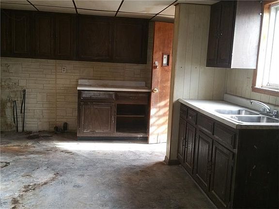 Great property with an inlaw suite that features a kitchen, livingroom, two bedrooms and a bath. Plus a hook up for laundry. Main part of the house has a nice size kitchen and separate dining room, first floor bath with a stand up shower, large livingroom with a wood fireplace. Upstairs is a second full bath with a tub and two more bedrooms with a bonus area. Very large yard in the rear with almost 1/2 acre of land and a storage shed. Off street parking for several cars. Front and side covered porches. Property in poor condition but has a good bit of potential. Vinyl siding.