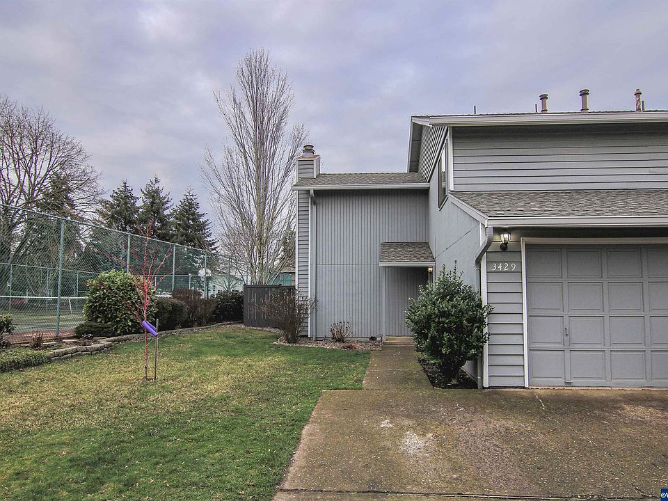 Come check out this 3 bedroom, 1.5 bathroom condo positioned right next to the tennis courts in a small HOA community. This is an amazing commuting location near the I5 entrance. Open living space and half bath downstairs. Covered patio, and fenced private yard space perfect for a pet, or container garden. HOA maintains front yard.