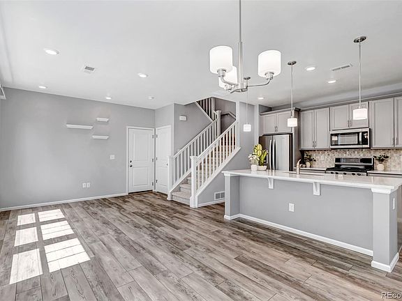 Stylish and meticulously maintained! This sensational turn-key home features clean, modern finishes and an open, light-filled layout! Outside, enjoy an HOA-maintained front yard, snow removal is included! Relax on your charming front porch. Inside, you’ll find a spacious main floor complete with a dedicated home office, perfect for remote work or study. The kitchen, living, and dining area flow seamlessly, showcasing luxury vinyl plank flooring, an elegant backsplash, sleek surfaces, a gas range, a nice pantry and plenty of natural light. Primary Suite views are lovely! This spacious haven offers a peaceful escape, complemented by a beautiful en suite bathroom designed with calm and sophistication in mind. For added convenience, the laundry is upstairs. The Meadows is a thriving community located a few miles from the vibrant heart of Downtown Castle Rock, one of Colorado’s most charming towns. Whether you're relaxing on the patio, exploring nearby restaurants, live music, parks, nature trails, and top-rated schools, this move-in ready residence offers the ultimate in comfort, modern style & convenience. Plus, with easy access to I-25, weekend getaways and daily commutes are effortless. Don’t miss the opportunity to make this exceptional property your new home!