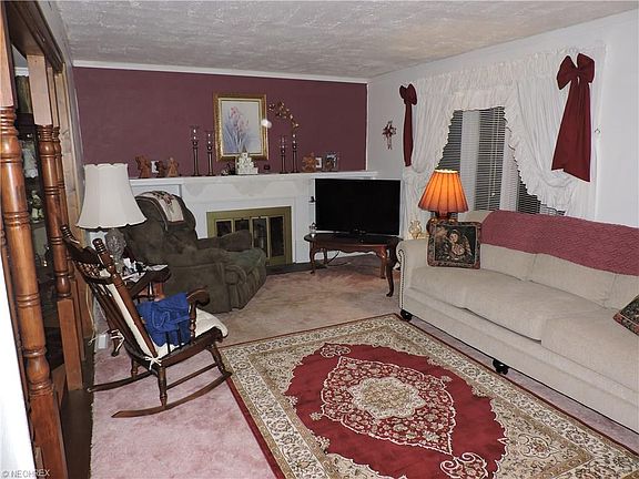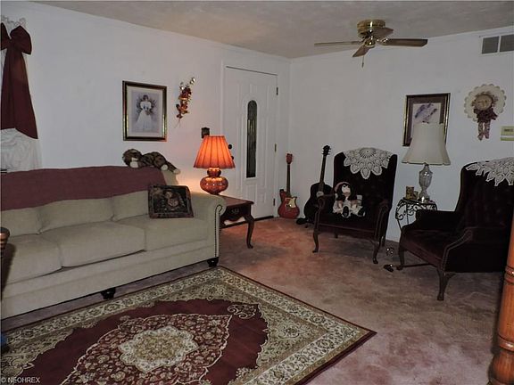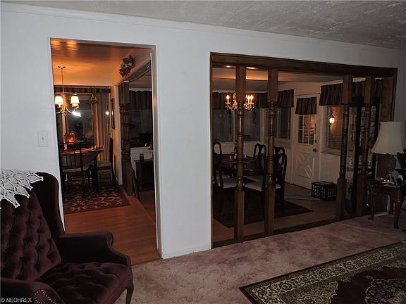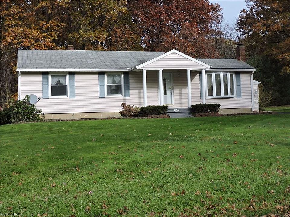Get the most for your money! 1st time offered in 40 years. Welcoming 3 BR ranch with "open concept" floor plan in living room, dining room, kitchen area, great for the family or friends to gather. Huge living room with fireplace, newer triple pane windows, updated electric, newer gas range, and hot water tank. Waterproofed basement. Conveniently located on a dead end st. near scenic Meandor Creek Reservoir and within minutes of SR #80, SR #680, and SR #11. Toilet, sink, and shower in basement. 1 yr home buyer warranty.
