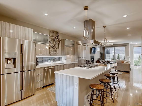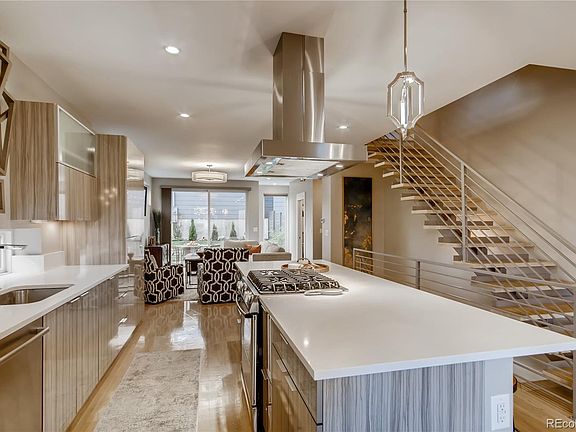 A different level of luxury, sophistication and livability in walk-to-everything LoHi...the hottest, hippest neighborhood in Denver! Spectacular downtown views from 3rd-story party room with roll-up garage door...just amazing! 3 levels of smartly-designed living spaces plus a rockin' basement with egressed guest suite. The Gourmet kitchen has it all; huge island with seating, quartz counters, high-end appliances, open floorplan including luxurious dining room & spacious living room. Wide plank wood floors on all 3 levels. Cool, industrial open staircases. 2nd floor has 3 bedrooms including the romantic master suite with balcony & huge window overlooking the city plus 2 additional bedrooms connected to a full bathroom. Laundry is conveniently located on the 2nd floor. Upstairs to the party room that's set up to entertain...half bath, wet bar w/wine fridge, roof top deck...everything you need to sit back and relax with friends. The nicely finished basement has a large media/family room with polished concrete floors, a bedroom and full bath. A real, separated, fenced yard for kids and pooches...nice! 2 car garage to secure vehicles? Got that, too. Your next decision?... Where to walk for dinner and cocktails.