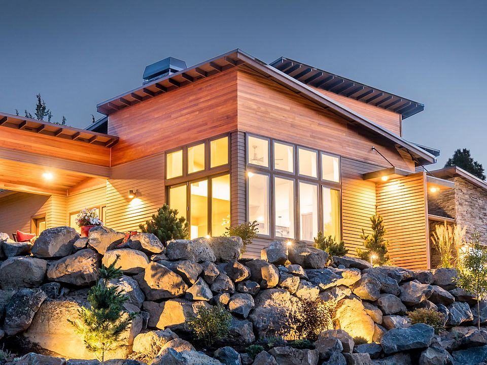 Don't miss your chance to buy the builders own home! Open layout including a master on main. Great room features a nine-foot folding door system, concrete floors and a custom built staircase makes this home truly unique. Gourmet kitchen features a massive island with quartz counter tops and high end appliances. Exterior highlights include a Standing Seam Metal Roof, Natural Cedar Accents, Alpine Ledge stone. The exterior also features a large covered patio an open patio with views of the city and hori