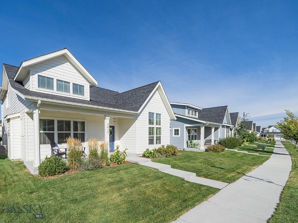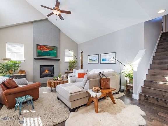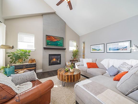 Charming home located in Southbridge Development. This home features a soaring ceiling on the main level and the living room has a gas fireplace, hardwood floors, and a lovely, upgraded kitchen with granite countertops and stainless steel appliances including a gas range as well as granite counter tops and a pantry. The main level also features grand windows, a half bathroom and laundry area and a spacious a bedroom with a tiled glass shower and walk-in closet and vanity with dual sinks in the master bathroom. The upper level has 2 bright and happy bedrooms and a large full bathroom. You will enjoy the warm Bozeman evenings with the comfort of air conditioning throughout and the covered east facing porch. There is also a fun courtyard space in the back yard, perfect for summer entertainment. This home is close to Montana State University, trails and parks. It is within 10 minutes from Downtown Bozeman and offers quick access to Hyalite Reservoir recreation area.