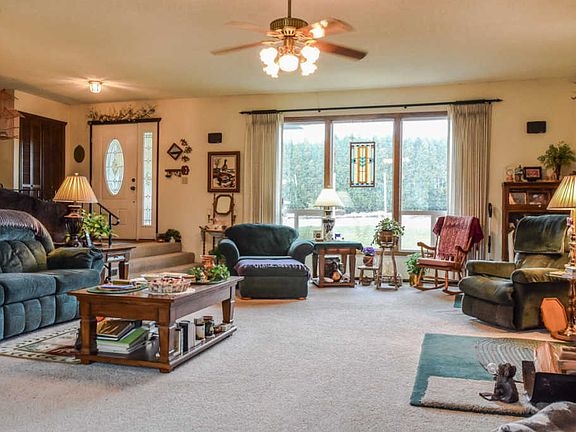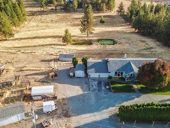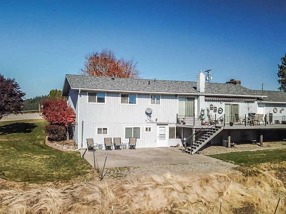 Over 5 acres! This spacious Coeur d'Alene 4BR/3BA daylight rancher provides main floor living and sits nestled on over 5 acres in a great location with stunning mountain views. Nestle in with a wood stove and a gas stove for warmth and serenity on chilly winter days. Step outside and enjoy the views from a large back deck along with a garden area, fruit trees, garden shed and a barn. Live'n is easy with upgraded windows, newer roof, 98% high efficiency furnace/heatpump. Lower level has separate entrance - rental potential? Lots of room to live your North Idaho dream!