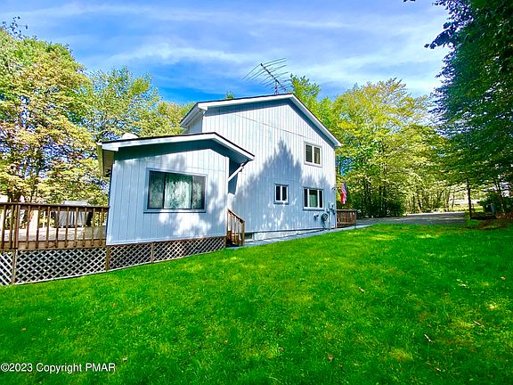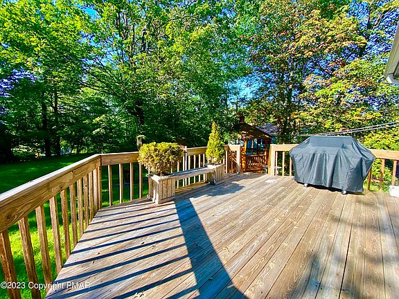 This Beautiful Home in desirable Pocono Farms Country Club features 3 Bedrooms 2 Bathroom, Kitchen, Large Cathedral Ceiling Dining Living Area, with Wood burning Fireplace to enjoy cold winter evenings... Yard perfect for entertaining or enjoying quiet evenings Large Decks, Gazebo and Brick Smoke House!!! This gem is located In the Heart of the Poconos just minutes away from Route 380 & 80, The Crossings and All Pocono Attractions!!! Can't miss that opportunity...SHORT TERM FRIENDLY COMMUNITY
