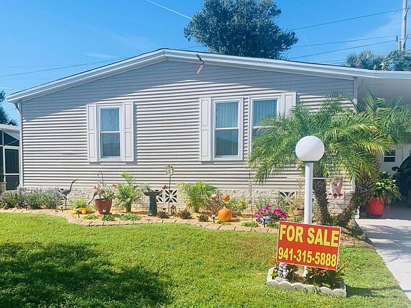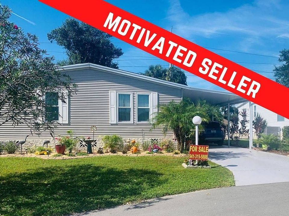 JOB BEING TRANSFERRED! MOTIVATED SELLER! PRICE REDUCED! This beautiful home is located in the Age Qualified Community of Ridgewood Estates. There is over 1,300 feet of living space. Two bedrooms and two bathrooms and a den that could be used as an extra bedroom or office. Also, there is a beautiful, screened lanai generous in size (10'x12') with a perimeter backyard for privacy. The peacefulness and the serenity of this den will surely be the place to entertain your friends or have a cocktail in the evening. As you enter the home the feel of an open concept reaches you. Vaulted ceilings this home flows from the living room into the kitchen and dining room area which leads through French doors into the den. The kitchen is a chef's dream! There are plenty of cabinets and countertop space with a large walk-in pantry. The dining room and kitchen have tiled floors. Laminate flooring throughout the home, carpet in the bedroom, with vaulted ceilings, sheet rock walls, and vertical blinds. The master bedroom features a double sink with laminate floors. It has a walk-in shower and plenty of storage space. An extra-large walk-in closet, carpet, and vaulted ceilings. The second bedroom has a ceiling fan and vaulted ceilings with a large closet. The second bathroom features a tub/ shower combination with a tile floor. This home has a long carport that can easily house three cars. Ridgewood Estates is a desired community. This listing will not last long! Lot rent $850/mo. All listing information is deemed reliable but not guaranteed and should be independently verified through personal inspection by appropriate professionals. Integrity Mobile Home Sales cannot guarantee or warrant the accuracy of this information, measurements, or condition of any property. Measurements are approximate. Lot rent is subject to change.
