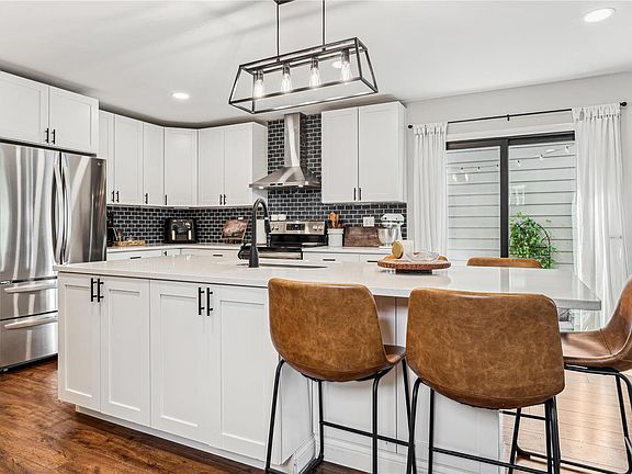 Beautifully updated 3 bed 3 bath two story on a corner lot, side patio and fenced yard. Newly remodeled kitchen (2021) with stainless steel appliances, gorgeous quartz counters and large pantry. Convenient half bath with pretty crown molding. LVP flooring (2021) throughout lower level. Slider off the kitchen leads to private side patio, perfect for enjoying your morning coffee.
