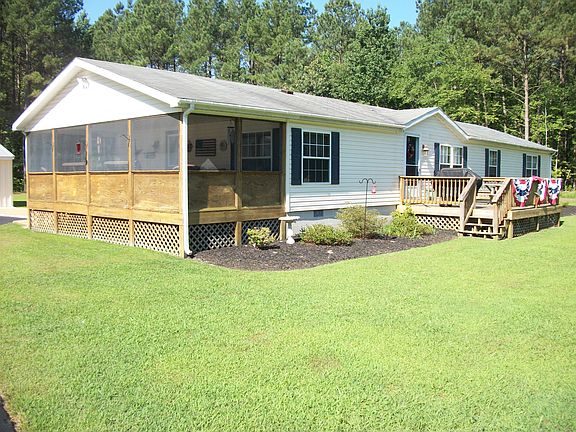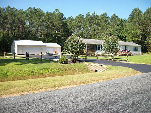 Spacious country living 5 bedroom, two bath, double wide with screened in porch and front deck (12X16) resting on 1 acre with paved drive way. Heating and AC system (LP Gas/elect) 2 years old. Storage you ask? Plenty! Property includes two detached garages, one is two car and the other is 2.5 cars, with two storage sheds and invisible fence. A must see.