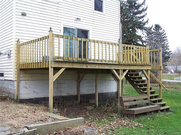 Cozy three bedroom home centrally located in the hamlet of Champion, minutes from Watertown, Carthage and Fort Drum. This home features a large living room with pellet stove, three spacious bedrooms, enclosed front porch, large back deck and a three stall garage with wood shop. The kitchen is fully applianced with plenty of counter space to make your family meal. Beautiful woodwork throughout. The large first floor bathroom features a large jetted garden tub for relaxing after a long day. A storage building and barn is available for added storage. Beautiful large yard with a stream flowing down the property line.