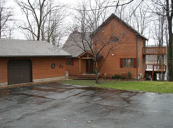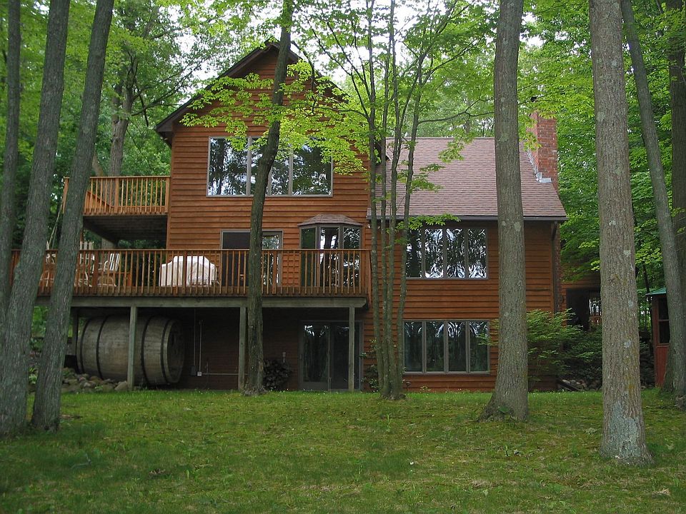 SUNSETS & SAND 4 bedroom 3 bath cabin located on clear water lake. High quality home includes hardwood floors, large master bedroom suite, 2 fireplaces all with a bonus room in the over-sized garage. Heavily wooded 2.59 acre lot with sunset views. Level elevation with mature trees. Professionally landscaped yard with a black top driveway. Sauna & hot tub are included. Too many extra's to list, a must see property!