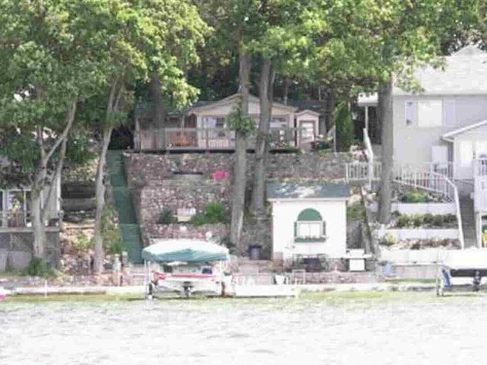 Lakefront property on Crooked Lake's second basin. This lake get-a-way features the original stone retaining walls, concrete seawall, lakeside shed with workbench and electricity (great for storing those lake toys and a fridge down by the water), and excellent gradual sand beach. The home has 3BR and 1BA. The view is exceptional!