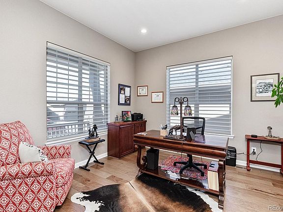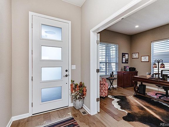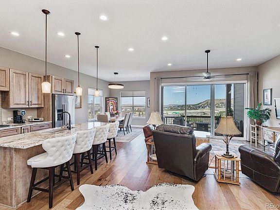 Welcome to Castle Rock's 55+ active-adult community, The Regency at Montaine! The resort-style living includes a clubhouse, pool, tennis courts, fitness center, and pickle and bocce ball courts. This beautiful ranch-style home backs to open space with un-obstructable views of the Rock. As you step into this Carson model numerous windows provide tons of natural light, while easy-care hickory floors are shown throughout. The amazing kitchen supplies lots of cabinet storage and counter space, making it perfect for entertaining. An expansive great room, private office, second bedroom, a large and comfortable primary bedroom suite, primary bath and laundry room are all included in this spacious home. The extended patio is 3 feet longer than the standard and includes 12 foot sliders that open from the living room area to the patio, which is wonderful for hosting guests. Another great addition is the instant hot water heater! The unfinished basement is ready for your expansion needs or storage space! With easy access to shopping, dining, and entertainment, this is not one you want to miss!