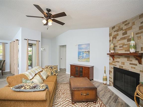 COASTAL CHIC RENOVATION, 2018 ROOF, TILE FLOORS THROUGHOUT, 3.7 MILES TO THE BEACH... This open floorplan, split bedroom home was beautifully updated with high end finishes including weathered wood-look porcelain tile floors throughout, elegant offwhite kitchen cabinets, granite counter tops, new stainless steel appliances, and coastal chic bathrooms. This home is freshly painted with soft cheerful colors and is protected by a new roof and garage door. Though all of the bedrooms are large, the master suite offers an ensuite bathroom and large walk-in closet. This home sits on a large corner lot in a quiet neighborhood with a uniquely large side yard offering room to store your boat or RV. The front yard is landscaped with tropical plants and a Luquat (Japanese Plum) fruit tree. The fenced, private backyard hosts a healthy young oak tree and open green space. This home is conveniently located near grocery stores, restaurants, shopping, night life, golf courses, and is only 3.7 Miles to the Beach by Sharky's On the Pier. This home is a must see!
