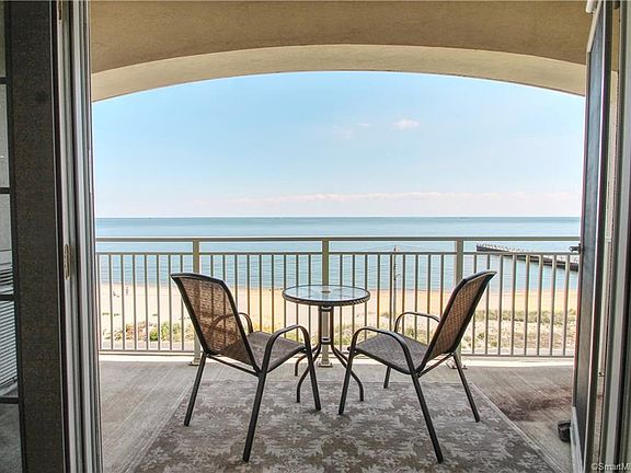 What an Amazing WATERVIEW! Spectacular 2 bed, 2 full bath ranch unit on the 4th floor, with incredible waterviews from all rooms!!! This is a new building, that shows beautifully; elevator and storage room a plus. New floors installed, granite & kitchen island, fresh paint, in-unit laundry, gas fireplace. French doors lead to a private balcony directly facing the water to watch the sunrise every morning. Master bedroom has walk-in closet and a large master bathroom to spoil you. There are 2 parking spaces- 1 rare covered spot. new $3,500 water heater. The complex offers a heated in-ground swimming pool. Miles of beach and a fabulous boardwalk await you. Walk to restaurants. Conveniently close to Yale, the VA hospital, highways and train. Won't last!