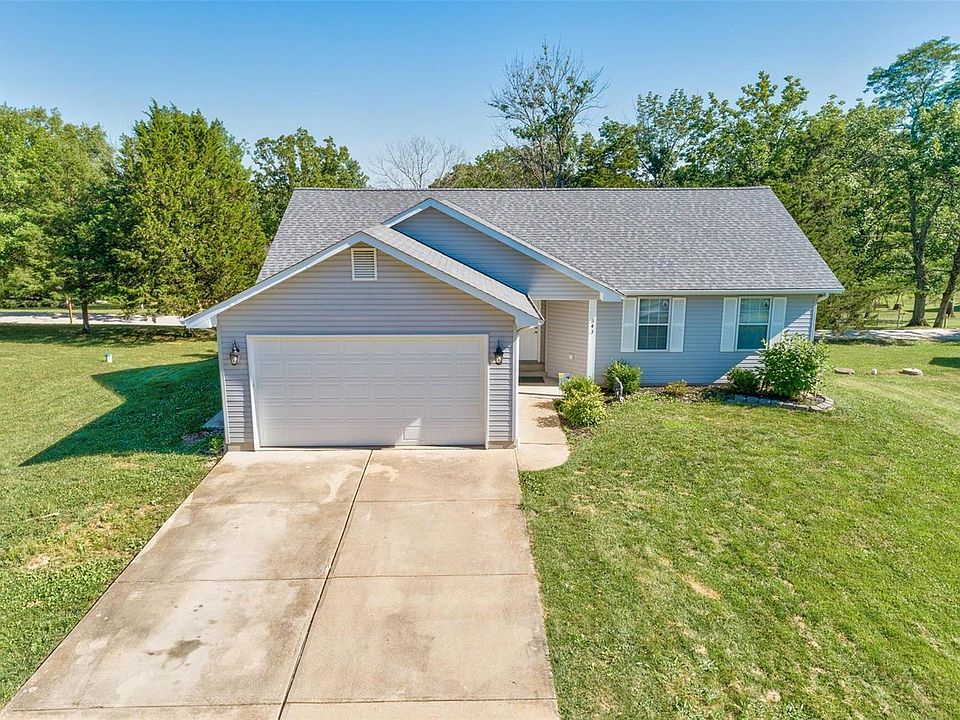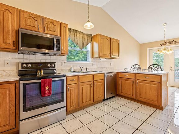As you enter the subdivision the white vinyl fence and pine trees line the property providing a private setting on 1.5+level acres. The long driveway provides ample parking for guests. Open the door and walk onto the gorgeous tile in the entry into the vast cathedral ceiling living room of this open floor plan. Master suite has two double closets and full bath. Each of the adjoining bedrooms have double closets as well. Lower lever has a custom glass block shower with a fourth bedroom, bar and entertainment area. All of this under a brand new architectural shingle roof.