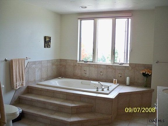 This home is located on 4.24 A. and has a spectacaler view of the mountains. 3bedrooms3.5 baths,large familly room on main level and a second in the basement with a wet bar and area for a pool table also room for 4 th bedroom or exercise room. Kitchen has corien counter and stainless steel appliances. living room and dining room have cathetral ceilings and hardwood floors .Master bedroom has a balcony and master bath has jetted tub and heated ceramic floor . 3 car garage ,pond and large deck.