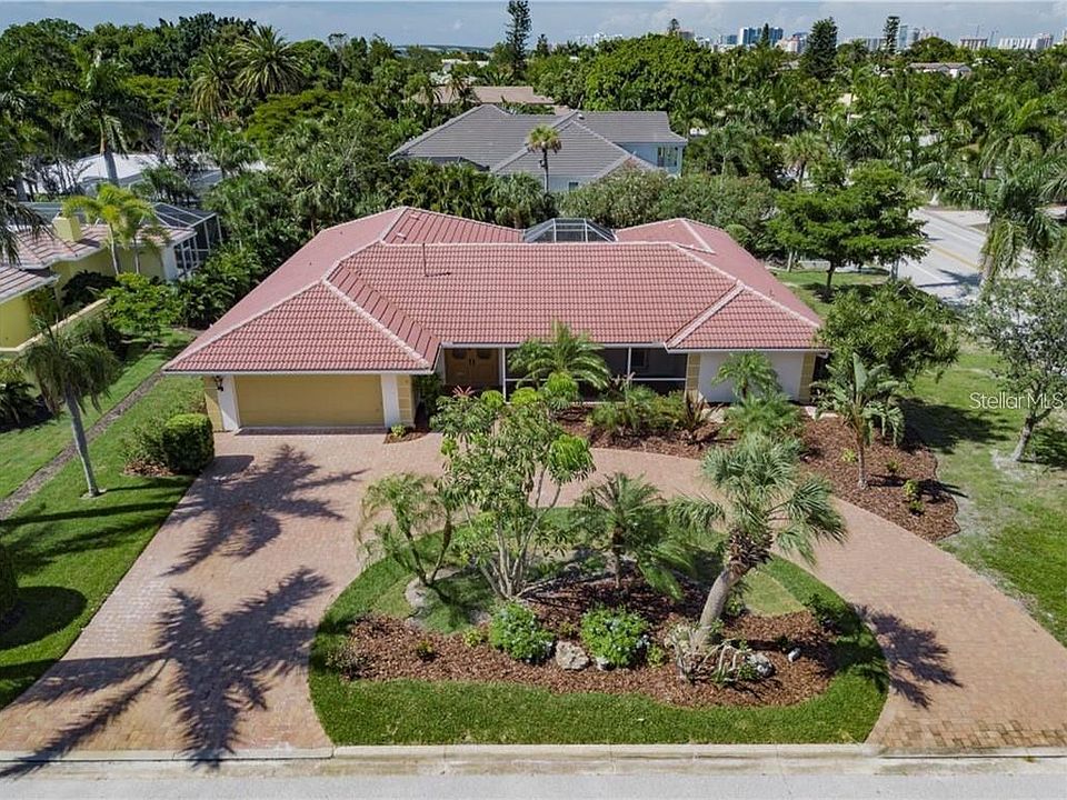 Beautiful 4 br, 3 1/2 bath home sits on a large corner lot in highly desirable Bird Key. This very open floor plan home has been remodeled with porcelain tile in the gourmet kitchen, main living room, hall ways, and bathrooms. The bedrooms have honey std bamboo flooring. There are new appliances which include: refrigerator, conventional oven / microwave, cook top, and dish washer.