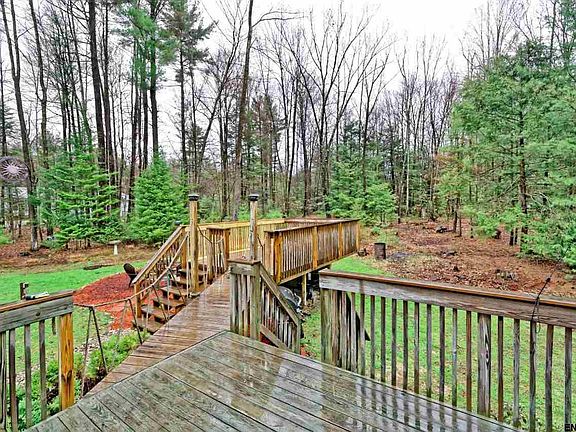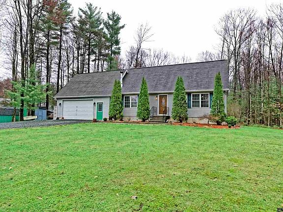 We are pleased to offer this charming 4 bedroom, 2 full bath expanded cape home nestled on a private 3 acre lot. Exterior features include: Private driveway, over-sized garage, raised bed garden, 2 sheds, private backyard setting with outdoor fire-pit/seating area, ornamental pond and 476 square foot deck. Interior features include: hardwood and laminate wood floors, ceramic tile, cast iron wood stove. Two bedrooms and full baths on both floors and partially finished basement could be rec room or bedroom.