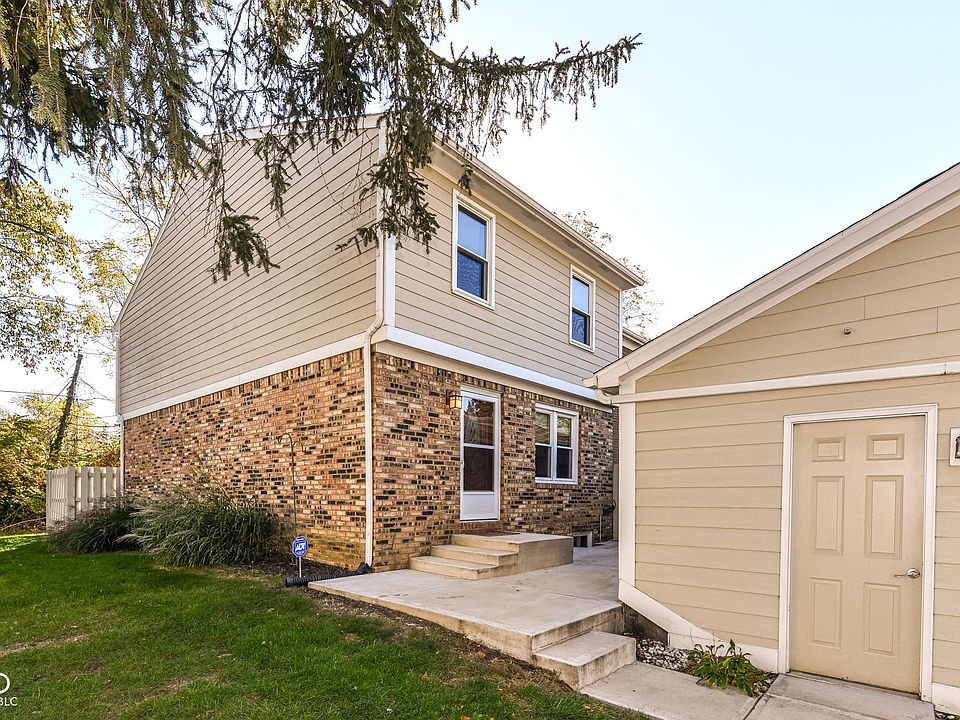 3 BR / 2.5 BA End unit condo with 2 car garage, walking distance to Midtown Carmel. Newer hardwood floors on the main level. Upper level has an owner's suite and two additional rooms that could be used as office space or bedrooms. All windows are newer. In 2022 a newly poured concrete walkway and front patio. The HOA takes care of lawn, snow removal and exterior maintenance. Recently, the Northside of the unit's siding was pressured washed by the HOA. The full basement can be used as a workshop and/or finished for additional living space. The community offers a pool and clubhouse. Come see everything Carmel has to offer at an approachable price point. The property is being sold in an estate sale.