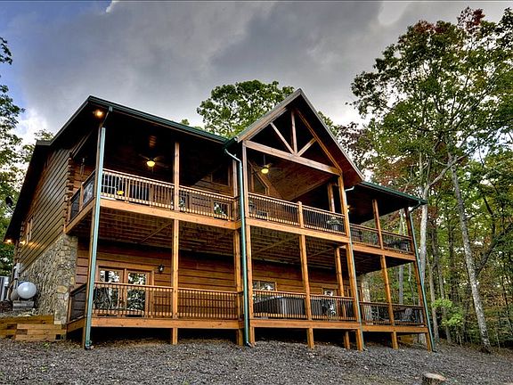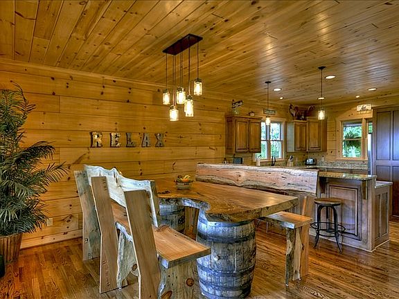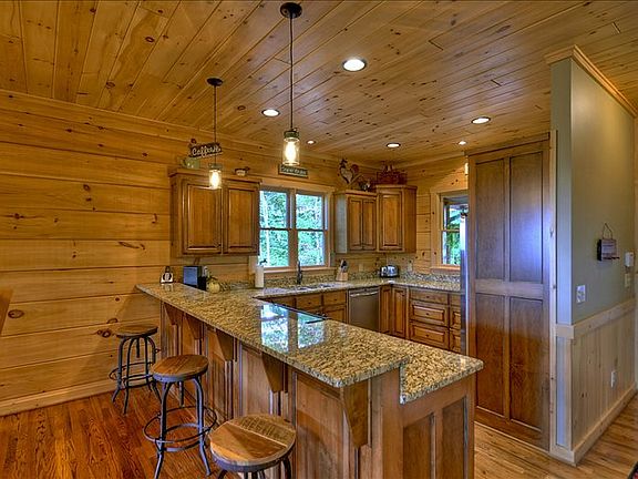 Year Round Lake Blue Ridge & Long Range Mountain Views!!! True Log Cabin w/ hands down some of the BEST vistas in the area! Open & inviting floor plan, w/ upgrades throughout. Spacious kitchen features granite countertops, stainless appliances, custom cabinets & 4 person bar. Large dining area w/ custom made whiskey barrel table. Vaulted great room featuring a real wood burning fireplace outfitted w/ gas logs, & floor to ceiling windows to take in the views from all directions. 2 bedrooms on the main level including large master suite w/ walk in closet. 2nd full bath has a tile shower & granite. Finished terrace level boasts a 2nd fireplace, wet bar, pool table, living area, large bedroom & full bath w/ walk in tile shower. Lennox HVAC, alarm, private hot tub, covered outdoor living, level entry, fire pit & ample paved parking. High end custom furnishings are negotiable 03/15/17