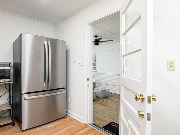 Welcome to the Cue Scott home! This adorable 2 bedroom, 1 bath private ranch sits on top of a hill and sleeps 4 comfortably. A long driveway can accommodate 3 cars. The house comes fully equipped for an enjoyable stay. Come in from strutting the streets of Roswell and you will be greeted by a nicely designed sunroom, stocked with your favorite board games. Take a minute to unload and grab a snack before entering the main house. The kitchen boasts simple and chic aesthetics and has everything you need to either warm up your take-out or even whip up a quick meal. This house has a beautiful dining area that you can sit and enjoy a nice meal with your family. The living room faces the front of the home with views of the 1/2 acre manicured lawn. Relax and watch your favorite show on Netflix or read a book youve been waiting to dive into. There is also a small office nook for you to get some work done during your visit. Both bedrooms have comfortable queen beds with additional storage in the closet area. Other important information: Newly renovated kitchen Newly renovated bathroom Gorgeous sunroom attached Comes furnished Pets allowed at this property with a deposit No smoking Must be at least 25 years old to rent The property requires 1 step to access from the carport entrance or from the front entrance and may be difficult for guests with limited mobility. This property features 5 exterior security cameras. Camera 1 is located on the front door and faces towards the front entrance area, camera 2 is located on the front of the driveway, camera 3 is located on the back of the carport facing towards carport, camera 4 faces the backyard, and camera 5 is near the shed that is on the property. The cameras are outward facing and do not look into interior spaces. The cameras record video and sound when activated by motion. Renter is responsible for obtaining all utilities. Renter is responsible for obtaining the proper renters insurance. Renter is responsible for maintaining the yard. Lease options start at 6 months to 2 years (rate increases may occur during renewal of lease). Renter will be responsible for paying a monthly pet fee