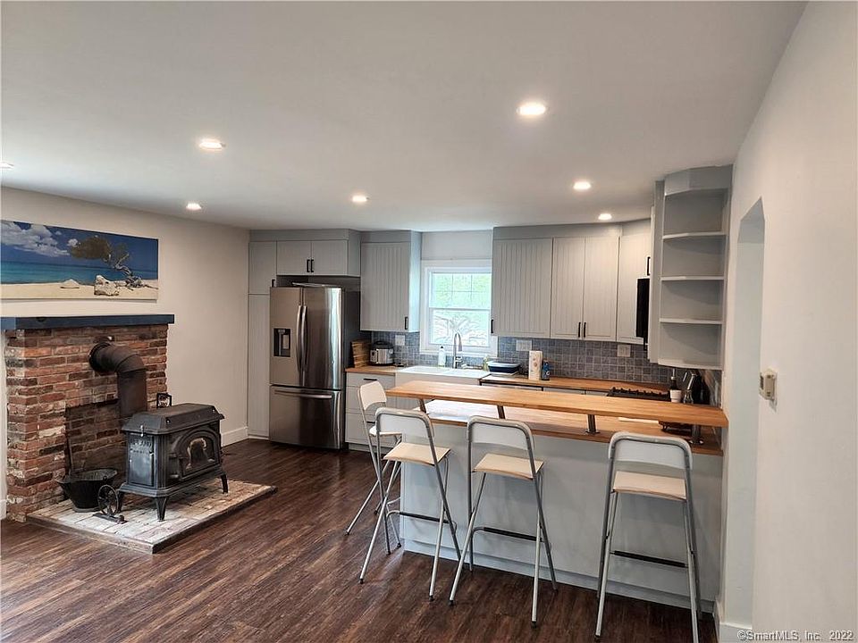 - Features: Bay/Bow Window, Breakfast Bar, Built-in Features, Dining Area, Double-Sink, Fireplace