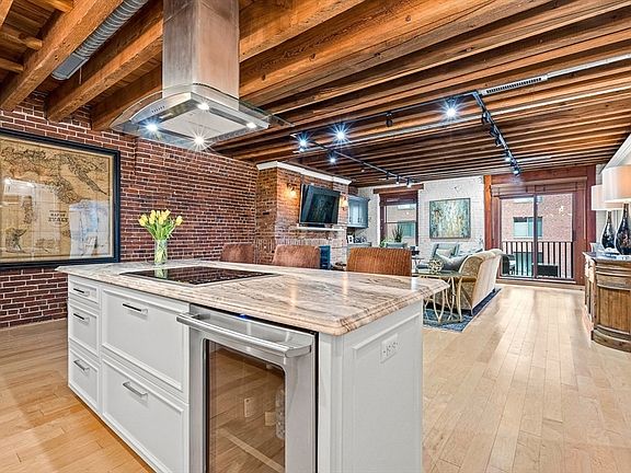 Loft-like, brick and beam residence at Union Wharf features deeded parking and private outdoor space with Harbor views. Ideal open floor plan with soaring beamed ceilings, wood burning fireplace, and custom lighting throughout. Kitchen with center island, custom cabinetry, granite countertops, Sub-Zero, Wolf induction cooktop, and two wine refrigerators including one in a formal bar area. Master bedroom with walk-in closet, updated finishes, and ensuite bath featuring a steam shower and double vanity. Guest bedroom with pocket doors and large closet. Fully modernized guest bath with jetted tub. HWD floors, central air, oversized laundry and storage room. Union Wharf features 24-hour gated parking, guest parking, sea-side heated swimming pool, on-site management, marina slips, and common roof deck with City and Harbor views. On Boston’s Harbor, next to the North End, Seaport District, Greenway, North/South Station, TD Garden, Downtown Boston, and all major transportation points.
