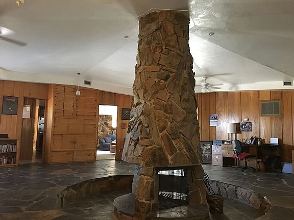 Very unique property with 4 bedrooms, 4 bathrooms, a large circular fireplace in the center of the living room. Large family room, separate workshop / storage room, carport, tennis courts and 2.5 acres of land. Tenant responsible for all utilities and yard maintenance