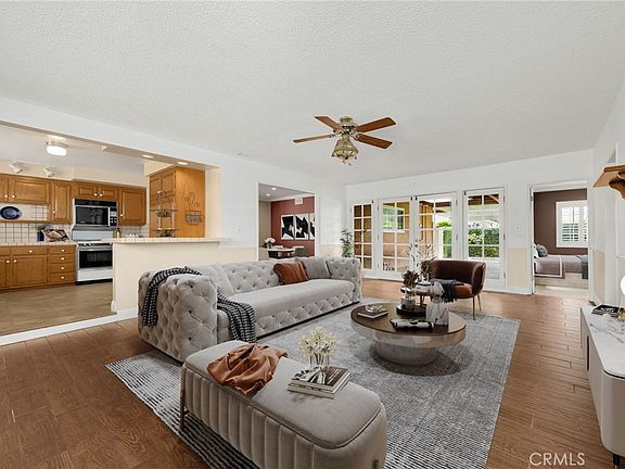 Spacious single-story home located on a cul-de-sac with 2020 sq ft of living space on an 8,000 sq ft lot. There are 4 bedrooms and 2 bathrooms with one huge bedroom which was used as a media room/bedroom (still has a large screen and speakers on the wall). The family room is adjacent to the kitchen and dining room with so much space you can create an entertaining area for holidays and parties. The oversized family room with French doors opens to the covered aluminum patio cover with skylight and adds even more room for outdoor entertaining. There is a nice grassy yard, block wall fencing and a separate gated side yard for storing items or keeping animals separate when entertaining. The 2-car attached garage opens to the family room with quick access to the kitchen. Both bathrooms have been updated along with the HVAC system in 2018. This is the perfect home to add your design ideas & personal touches, a great floor plan with some creativity will make this home your dream home...