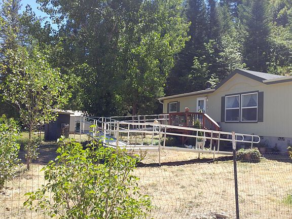 This 2009 manufactured home with 3 bedrooms, 2 baths, and 1512 square feet sits on 5 acres. Spacious gourmet kitchen with eat bar ample counter space and cupboards. A fenced front yard, ADA ramp, and several out buildings, this home would be ideal for animal lovers, gardeners, and those who have an appreciation for nature. This home boast a 3 car carport and has plenty of room for all of your toys!