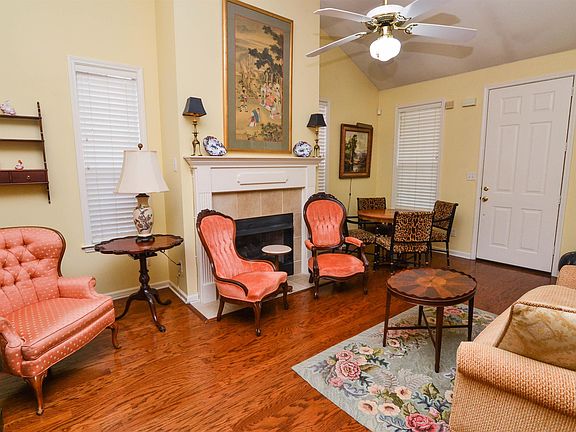 Beautiful h/w floors throughout. High ceilings, washer, dryer, refrigerator included. 2 BR, 2 BA on one level . f/p in den. Great walk-in shower in primary bath.
