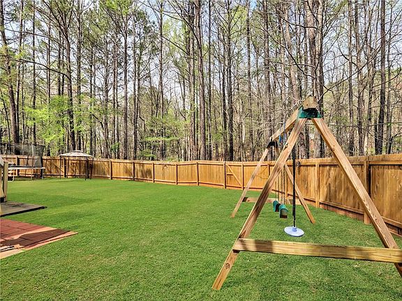 Perched on an almost one acre, corner lot, this fabulous home with partially finished terrace level, is beautifully sited on one of the largest lots in the community! An enclosed rear porch / sunroom with new bamboo floors expands the finished living space on the main level & a screened-in patio off of the terrace level provides a cozy vignette for year-round relaxation. The rocking chair front porch welcomes guests into a soaring 2-story foyer with lots of natural light. Upgrades and renovations include a gourmet, eat-in kitchen with new quartz countertops, kitchen cabinetry, subway tile backsplash, and stainless steel sink. Formal dining room & separate living room, office or flex room flank the foyer and feature hardwood floors and newer, neutral paint. The fireside family room with hardwood floors opens to the kitchen and sunny breakfast room.The remodeled powder room showcases new flooring and new vanity. The owner's suite features a vaulted, spa-like bath with whirlpool tub, separate rain shower, ceramic tile floors, new dual vanities and walk-in closet. The partially finished terrace level offers new vinyl floors and new cabinetry. The expansive rear lawn with privacy cedar fencing is perfect for yard games, entertaining and summer bar-b-ques and features a tiled patio, grilling area with pergola. A natural wooded area with a small creek extends past the fence for added privacy and beauty. All of this in a convenient location near shopping, dining, and top North Paulding schools!