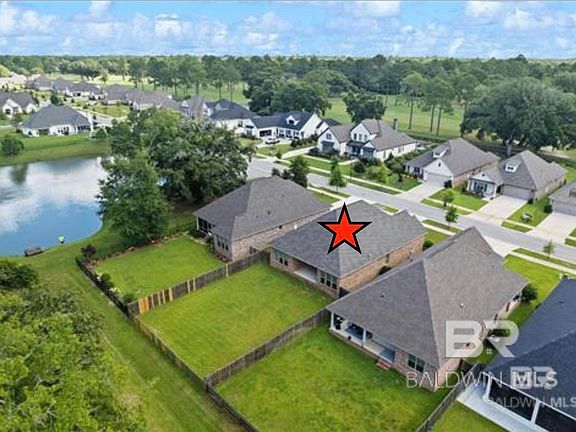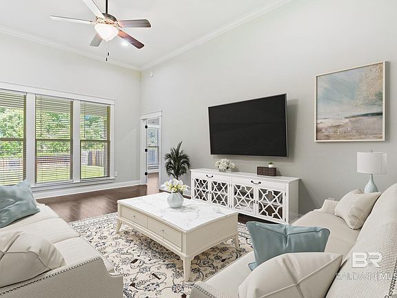 Affordable luxury living can be found in one of the most desirable Fairhope communities, The Village at Firethorne! Low maintenance, easy living for the active lifestyle without sacrificing grandeur is what you'll find in this home. One story 3 bedroom, 2 bath plan with soaring 12' ceilings opens up to living room with giant triple windows as the focal point- absolutely gorgeous. This open floor plan design allows you to enjoy friends & family from the hub of the home to the back patio. The fenced in back yard overlooks mature live oaks in the wooded adjacent land. Stainless steel Samsung appliances, flat top large granite island, tankless water heater, crown molding, upgraded hardwood floors in the foyer, dining room, living room & master bedroom. Gorgeous master bathroom with a zero entry shower, built in shower seat & separate hand held sprayer elegantly designed with a frameless shower glass above half wall, no need for a shower door. Laundry room sink is perfect addition, nothing else needed! This gem is like new! 2024: Fresh paint, brand new carpet, new roof. Fortified Gold for reduced insurance rates and peace of mind. Buyer to verify all information during due diligence.