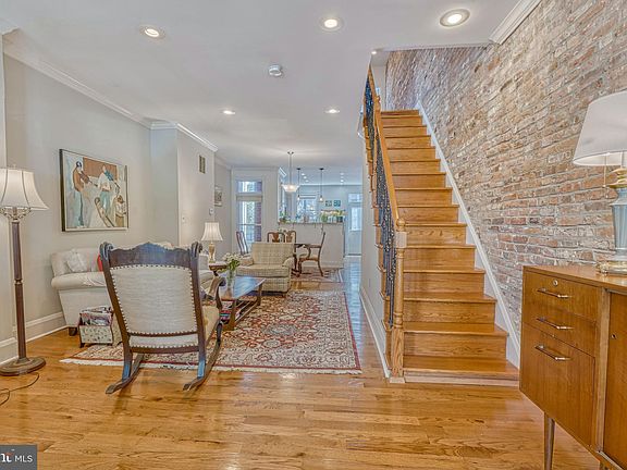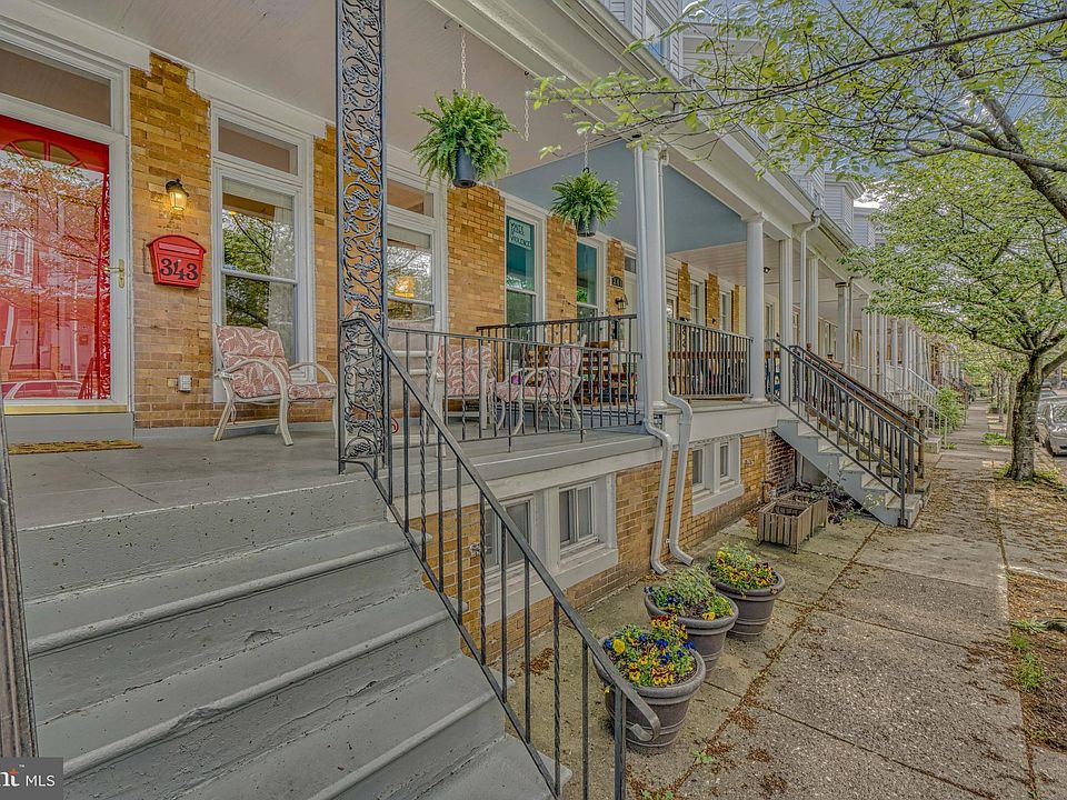 This stunning porch-front home is sure to impress! The open main level features crown molding and beautiful wood floors that flow seamlessly from the living room to the dining room and into the kitchen. The kitchen is a chef's dream, boasting granite counters and stainless steel appliances, with easy access to the back deck. Upstairs, you'll find the primary bedroom, which is both bright and spacious, complete with two closets. Additionally, there are two more bedrooms and a beautiful full bathroom with a separate tub and shower. The partially finished basement includes a full bathroom, offering even more living space. Enjoy the convenience of being within walking distance of the Farmers Market, JHU, and many other amenities.