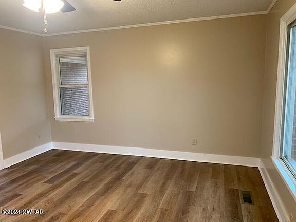 Corner lot in town - neat brick home with three bedrooms and one bath - new flooring and paint throughout - attached carport - outbuilding