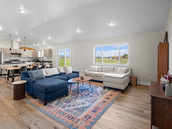 Welcome to your dream home nestled in the heart of Kalispell, MT. Skip the hassle of renovations and upgrades. This home is ready for you to settle in immediately, allowing you to start creating new memories without delay. Situated in a prime location, this 3-bedroom, 2-bath ranch home offers a seamless fusion of modern convenience and picturesque mountain views to draw in nature. With its spacious open floor plan and vaulted ceilings, the home creates a seamless flow and an inviting atmosphere, ideal for both family living and entertaining guests. Step inside to a spacious entry with ample storage that leads to an abundance of natural light that floods through the windows, highlighting the beautiful flooring. The well-appointed kitchen boasts stainless steel appliances, custom cabinetry, and a generously sized center island, making it ideal for gathering. The primary suite is conveniently situated separately from the guest rooms, featuring an en-suite bath with a beautifully tiled walk-in shower, dual sinks, and spacious walk-in closet. The additional two bedrooms offer ample room for friends, guests or a growing family. Outside, the property offers breathtaking views of the surrounding mountains, including the ski runs at Whitefish Mountain Resort, and showcases a meticulously landscaped yard with trex decking, perfect for enjoying the fresh Montana air or quiet evenings under the stars. With its close proximity to Kalispell's amenities and central location to access an array of outdoor recreational activities, including Glacier Nat'l Park, Flathead lake, hiking, fishing, golfing, skiing and more, this home presents an unparalleled opportunity to embrace the Montana lifestyle fully. Need airport access? this home is just over 7 mi. to Glacier Park Int'l Airport. Don't miss out on the chance to make this Kalispell gem your own. Contact Janine Bodway at 406-270-7282 or your real estate professional.
