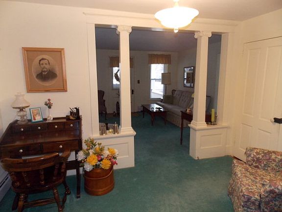 This is a WELL MAINTAINED 2 story home with 4 spacious bedrooms and 2 full baths. This home features: a large Great Room with a beautiful brick, wood burning, fireplace, a living room, den and formal dining room. A galley kitchen with appliances including the washer & dryer. There is a lovely sunroom, natural gas baseboard heat, new replacement windows throughout and a detached 2 car garage all on a nice 1.03 acre lot. This home is a must see!