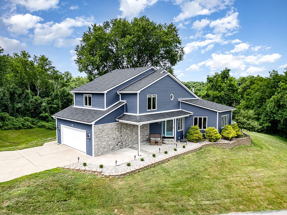 Enjoy incredible views of the Ohio River and the beautiful valley view everyday in this beautiful 2-Story Home situated on over 10 acres of land and is situated in a peaceful setting. This well designed plan is loaded with updates and offers soaring ceilings, tons of natural lighting with beautiful views from every window, updates include a New Roof & Sky Lights/New Siding/Gutters & downspouts/Entertaining Your Guests will be delightful on this Expansive Deck with a Deck addition & new Railing/New Pool Pump & Liner w/Salt Water System/New White Electrical Outlets throughout/Two Baths have been completed updated/New Washer & Dryer Included/Kitchen equipped with New Granite, Large Counterbar, Tile Backsplash, Newer appliances & Large Pantry/New Flooring throughout/New Fireplace Hearth/Wood Burning Fireplace with Blower/New Furnace Thermostat/Water Softener - 2020/Master Suite offers small balcony with view of backyard and pond/Detached Oversized Shed/enjoy country living with quick and easy access to I-71/1 Year Home Warranty Provided by Seller.