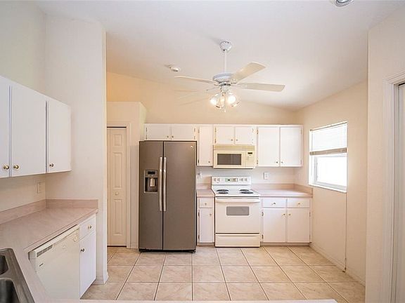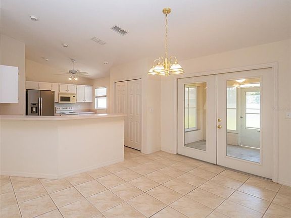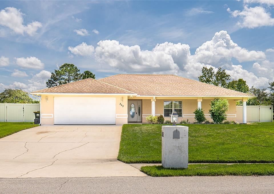 When you're greeted by the EXPANSIVE WIDE-OPEN FRONT PORCH, you can image comfy chairs and a table to set your drink on. Then step inside where the kitchen, dining and living rooms are center stage in this SPLIT BEDROOM floorplan. The front door and side light glass panels let natural light in. The KITCHEN offers 2 PANTRIES, a BREAKFAST BAR and is open to the dining and living rooms offering easy flow for family and guests to gather. Just off the dining area are FRENCH DOORS to the SCREENED PATIO that leads out to a VERY SPACIOUS newly PVC PRIVACY FENCED BACKYARD AND OPEN PATIO. The MASTER BATH has a TUB and SEPARATE SHOWER, WALK-IN CLOSET and DUAL SINKS. The HALL BATH accommodates the 2nd and 3rd bedrooms with a SHOWER/TUB COMBO. The MURPHY BED in the front bedroom can remain with the property. Just off the hall from the Master suite and kitchen, the Indoor laundry leads out to the 2-car garage. A/C is approximately 3 years old, property is on public water, and a new well was installed in 2021 for irrigation only. All the older carpet has been removed, leaving a clean slate to install flooring of your choice. A flooring allowance will be considered with an acceptable offer. There are 2 NEARBY LAKES with PUBLIC BOAT RAMPS and FISHING, AND this home is APPROXIMATELY 4 MILES from I-4.
