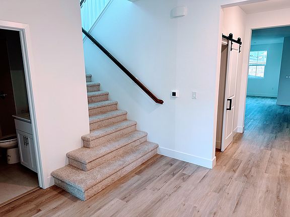 The open-concept great room flows into a covered patio and landscaped backyard ideal for entertaining or relaxing. A downstairs bedroom and full bath with walk-in shower offer privacy for guests or multi-generational living.Upstairs, enjoy a flexible loft space (great for a playroom, office, or extra bedroom), plus spacious secondary bedrooms and a stylish shared bath. The sun-filled primary suite includes: