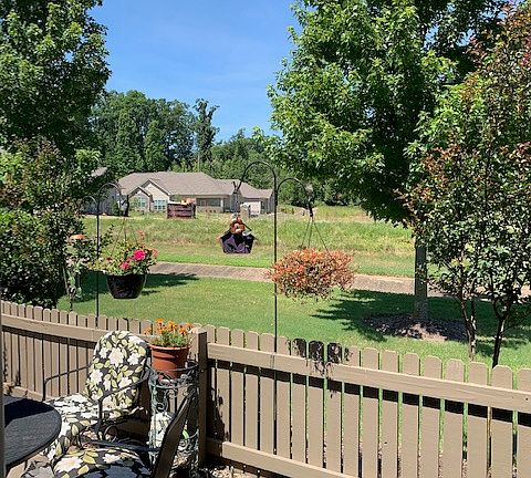 Charming patio home living which is a back unit offering more privacy with fenced patio. This home includes a open floor plan with vaulted ceilings and arched windows. 3M window film applied to windows 2013. One level two bed/bath with sunroom, jacuzzi bathtub, gas log fireplace and lots of storage space. Two car garage including a new garage door installed in 2019. Kitchen includes granite countertops, oakwood cabinets, 2 food pantries and additional large closet. Plus refrigerator will convey. Laundry room includes sink with cabinets and washer/dryer will convey. Large storage closet located next to laundry room. 2013 upgrades include: oak hardwood flooring in living/dining and bedroom areas; walk-in shower installed with comfort toilet; grab bars; and new appliances. All exterior maintenance provided by H.O.A. Active community with clubhouse including workout facility and pool. Seller agrees to pay up to $2500 towards buyer closing costs.